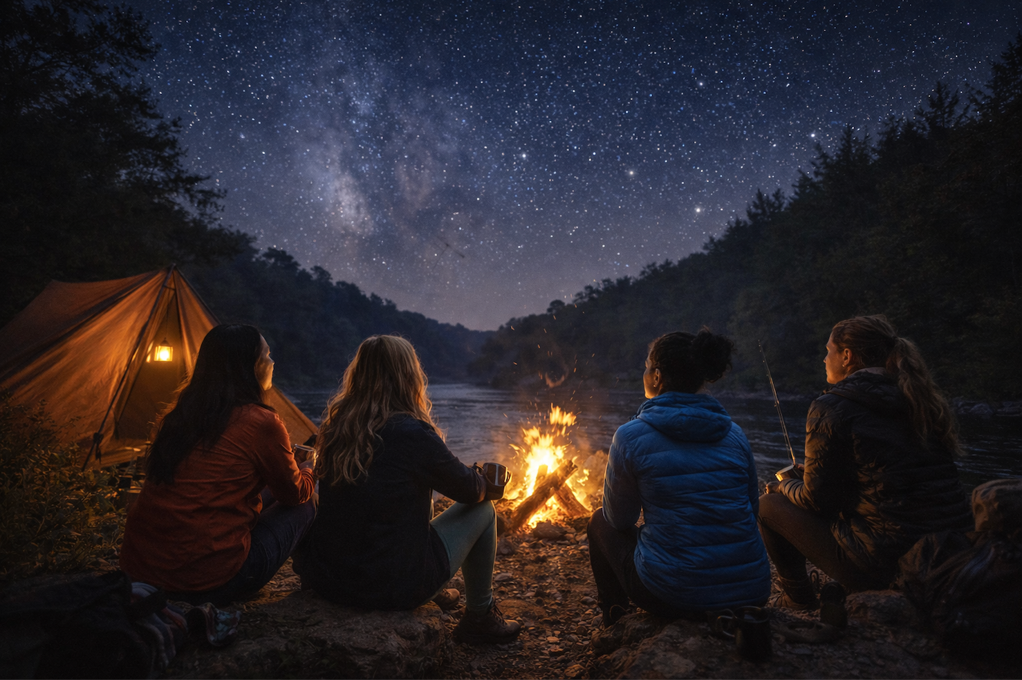The experience brings women together on the Delaware River for a day of fishing, floating, shared meals, and an overnight stay under the stars. Throughout the event we partner with the people and small businesses that make this place special. Local partners like Mama Garden Co., Soaring Eagle Campground, and Hagemann’s Bait & Tackle help make the experience possible—from guidance on the river to the land that hosts our overnight stay.